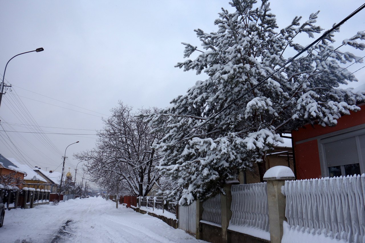 Улицы Мукачево были густо засыпаны снегом, так что мы, конечно, не удержались и поиграли в снежки.
